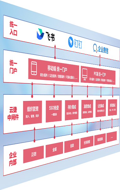 对协作平台提供支持服务,,支持企业应用与协作平台对接,,,,包含组织同步、、、、消息集成、、、待办集成等。。支持目前主流的协作平台:钉钉、、、、企微和飞书。。。。
